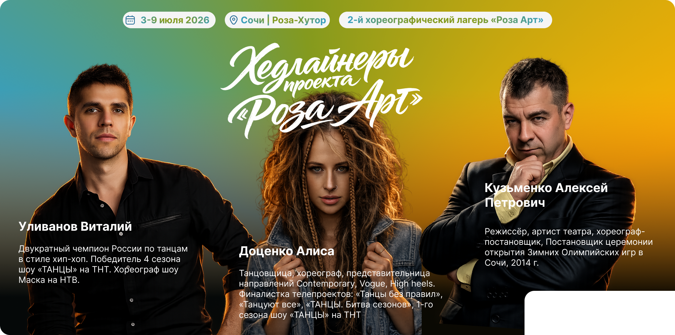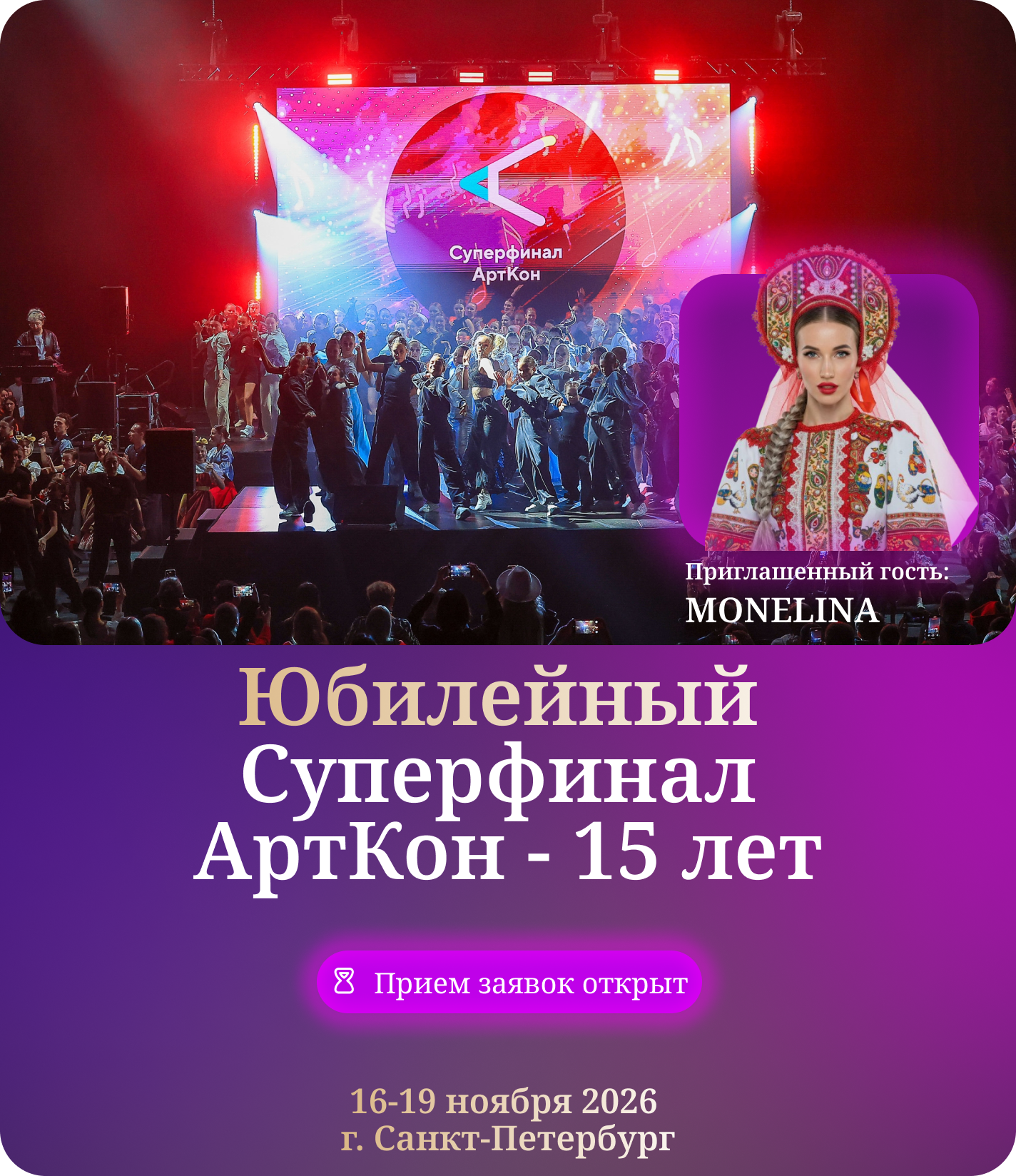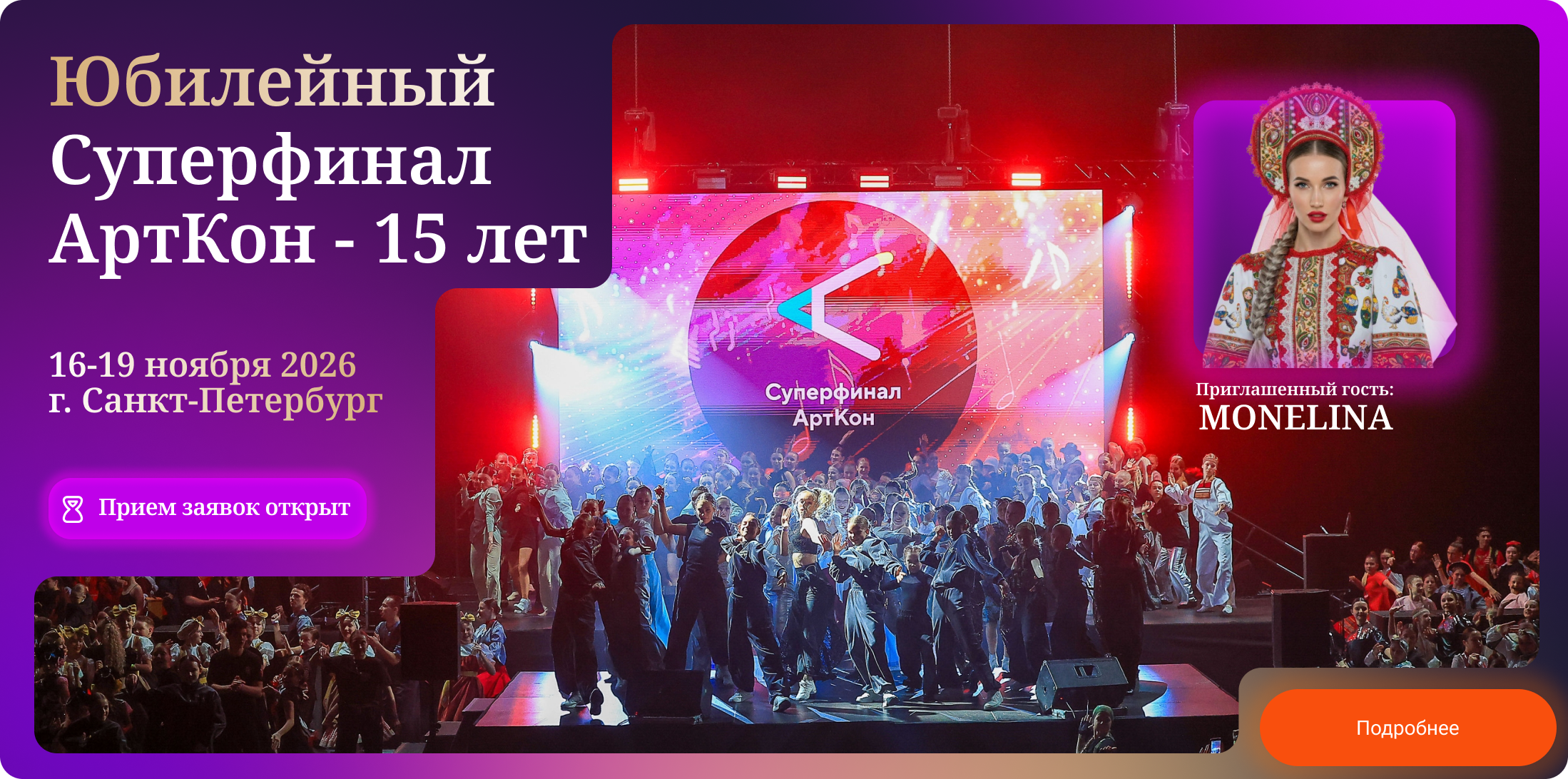 Нам понравилось абсолютно всё, всё было очень круто организовано 🙌 программа, сам конкурс 👍 но больше всего запомнился Арткон который проходил в арене, очень насыщенная и интересная программа 👏 мастер классы именно по хореографии были классные, хотелось бы побольше, мы уже к вам ездили 2 года назад было чуть побольше мастер классов, и Имо давал, и Варнава и Андрей Глущенко. интересные интерактивы, дискотека 💃👍 у нас и родители и дети зажигали. Зарядились энергией ⚡