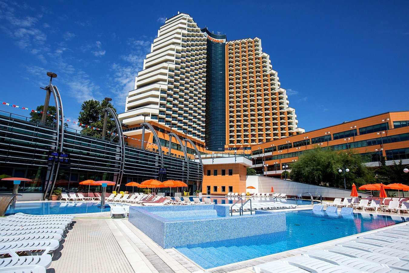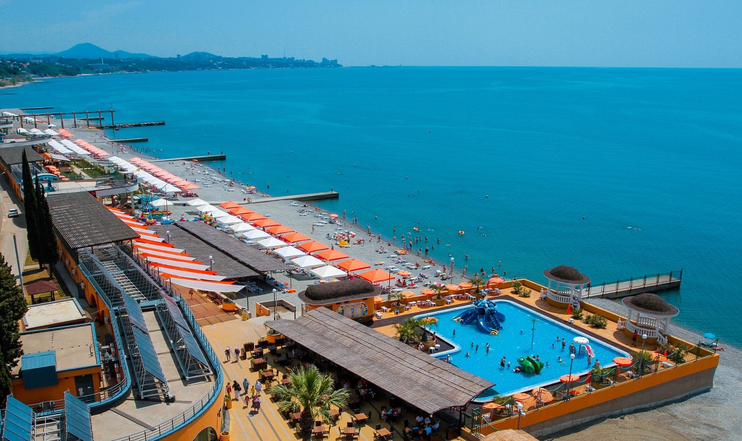 - Открытые подогреваемые бассейны с морской водой;